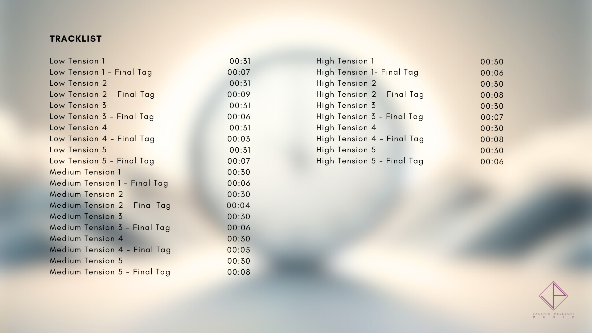 This pack is produced, recorded, mixed and mastered by critically acclaimed trailer music composer Valerio Pellegri (credits: BBC, CBS, FOX, Netflix, SKY, National Geographic...) and it’s a great choice for Quiz, Trivia, Tests, Challenges, Puzzle and “searching for the answer” games. Enjoy these tense and exciting clock tracks.